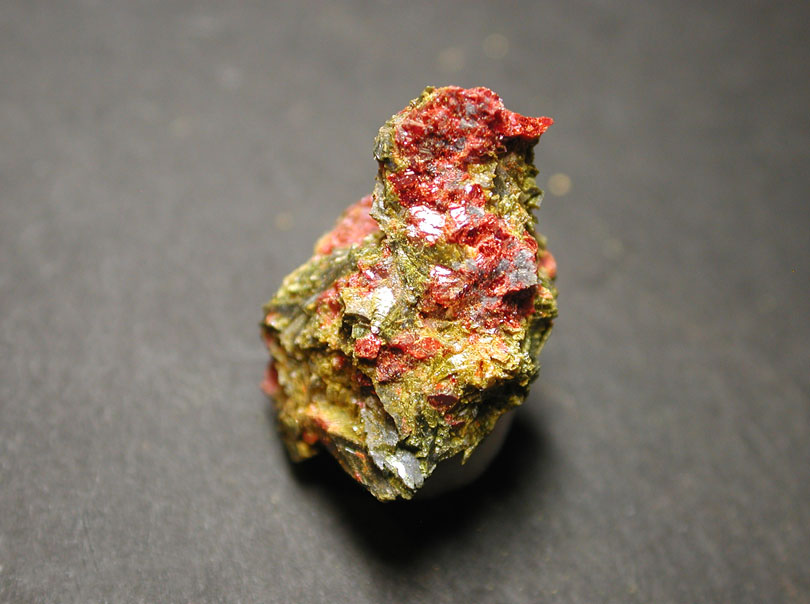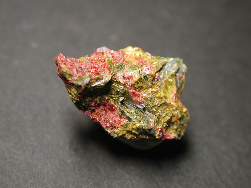 ゲッチェル鉱は、砒素とアンチモンの硫化鉱物で、砒素の硫化鉱物、鶏冠石に良く似た鮮赤色の鉱物です。石黄を共ない、鶏冠石と同じ産地から産出するため、同定には多少戸惑いますが、特徴的な真珠光沢と、より鮮やかな赤色で区別する事が出来ます。過去の経験から、鶏冠石のような極端な風化は見られません。