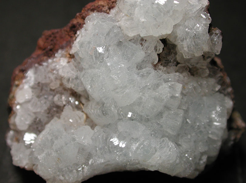 光輝ある無色の結晶ですが、よく観察すると、僅かに淡青色に色付いているコンゴ産の異極鉱です。褐鉄鉱上に集合体をなして産出しています。