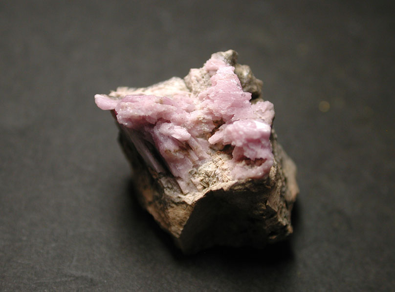 我が国からも産出の知られるマンガンとカルシウムの珪酸塩鉱物、イネス石です。日本産に比べ、立派なピンク色の自形結晶が観察出来るカリフォルニア産の標本です。