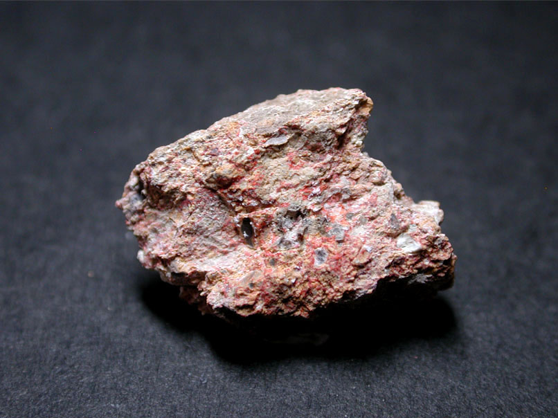 古代の顔料として利用されていた鉛の酸化物、マシコットです。マシコットは黄色いものが知られていますが、このドイツ産の標本はオレンジ色〜赤色をしています。光明丹には、鉛丹の他にリサージなどが知られていますが、マシコットと同様に、産出の少ないレアミネラルとなっています。