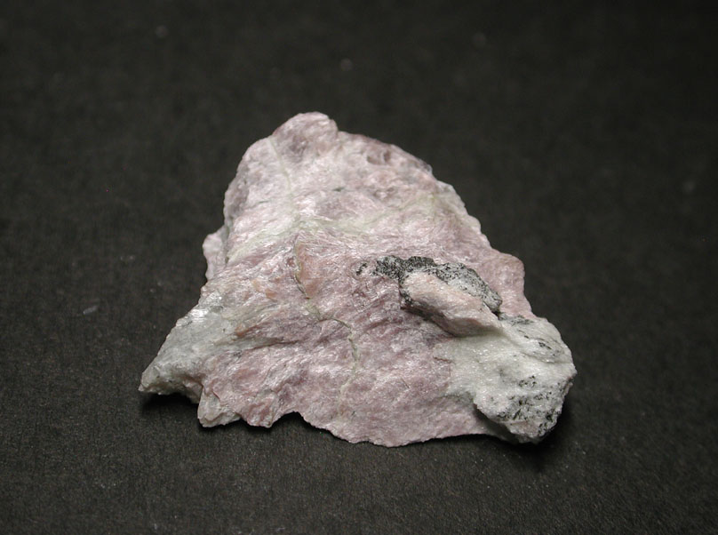 カリウム、カルシウム、セリウムにフッ素を加えた珪酸塩鉱物、マイザー石です。淡桃色の部分がマイザー石で、希土類元素を含む稀産鉱物となっています。米国、アーカンソー州産のもので、短波紫外線により蛍光性を発します。