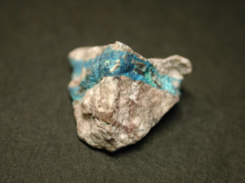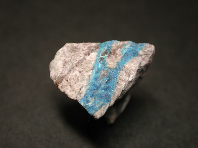 南アフリカから産出する、アホー石やパパゴ石の内包により、ブルーに色付いた水晶は有名ですが、こちらは米国、アリゾナ州から産出したパパゴ石の原産地標本です。鮮やかな青色が印象的なサムネイルサイズの標本です。