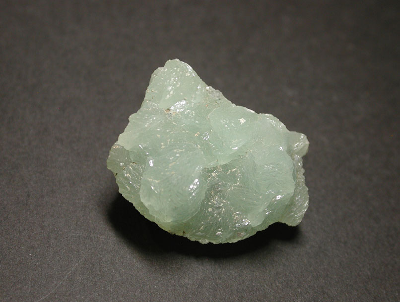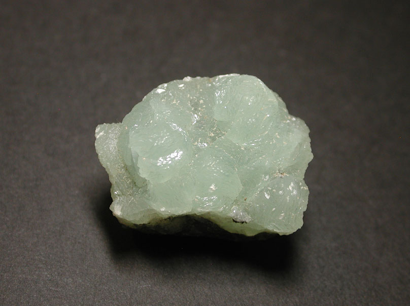 カルシウムとアルミニウムの珪酸塩鉱物、葡萄石です。米国、ニュージャージー州のパターソンは葡萄石の有名産地で、その名の如く、淡緑色の葡萄を思わせる結晶集合体で産出しています。