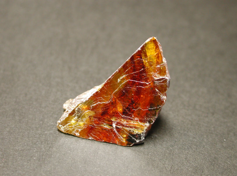 スペイン、Santander 産の閃亜鉛鉱 (べっ甲亜鉛)です。光輝に優れた、黄色、赤褐色、褐色の塊で産出しています。