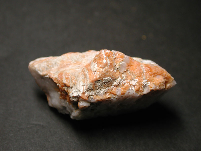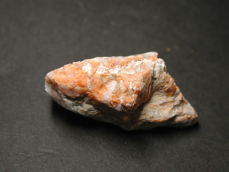 スイス、チンゼン産のチンゼン斧石です。斧石という名称はグループ名で、鉄斧石、マンガン斧石、チンゼン斧石などがあり、それぞれ独立種となっています。このチンゼン斧石はマンガン斧石よりも多くのマンガンを含む種で、独特のオレンジ色〜黄色が特徴的な鉱物です。イタリア産のものなど、結晶標本もありますが、多くの場合、塊状、脈状などで産出します。原産地、チンゼンの標本となっています。