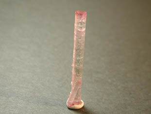 | ルベライトの分離結晶品。端面は丸みを帯びていて不完全だが、透明度は高く、クラックのない美しい品。 |